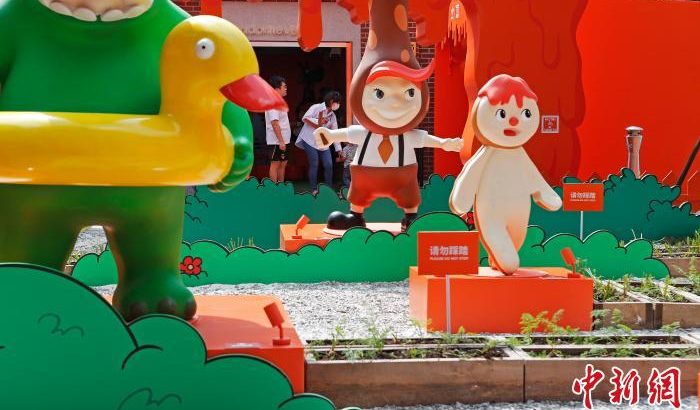 遊客帶着孩子在愚園路遊玩。 殷立勤 攝