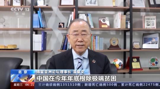 博鰲亞洲論壇理事長 潘基文:中國在今年年底根除極端貧困,使得中國在發展中國家之列率先實現了可持續發展目標當中的消除貧困目標。