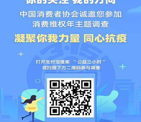 中國消費者報北京訊(記者任震宇)日前,“凝聚你我力量 同心抗疫”中消協消費維權年主題調查正式上線。消費者可以通過支付寶掃一掃參与調查活動,把有關消費維權的想法和觀點通過本次調查轉達給中消協,推動實現消費者權益保護的共建共治共享。
