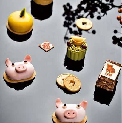 主廚指出,今年農曆春節應景的吉祥物是胖嘟嘟的生肖豬,於是將味甘而醇的烏龍茶奶霜結合清爽酸甜覆盆子果醬勾勒出維妙維肖的小豬,有「諸事圓滿」的祝福之意。同時,在主廚的巧手下,過年時分家家戶戶必定會準備的橘子,化身為酸甜可口,小巧可愛的柑橘慕斯球,不僅口感清新,更是大吉大利的好兆頭。雙人下午茶每套NT$1,680+10%,數量有限,菜色依實際販售狀況調整。