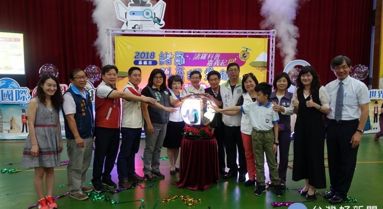 暑假去那兒玩?嘉義市政府精心策畫暑假最大型的中小學科學盛會-「2018諸羅科普探索趣」即將在7/13至18日上午9時至下午17時,連續6天在港坪運動公園體育館你來玩科學! 6日在嘉義市民族國小為此科學盛會暖身,舉辦「諸羅科普探索趣記者會」,由嘉義市長涂醒哲與貴賓們啟動水晶球,現場更操作無人機-「多軸飛行器」,載著「嘉義起飛」的字樣騰空飛行,記者會場上今年最有特色的展出單位展示各式科學遊戲,吸引小朋友嘗鮮。