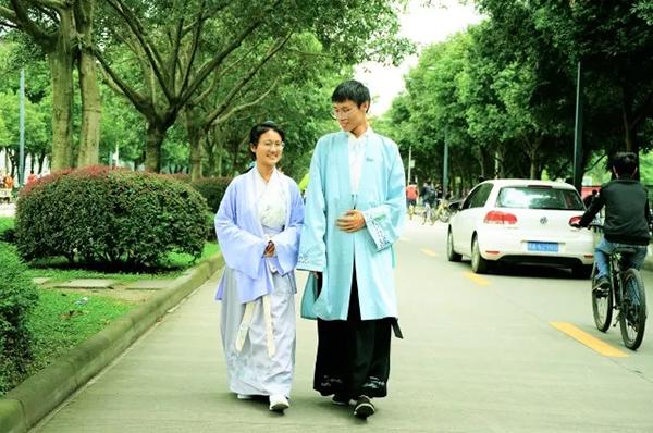 “同學及老師(對自己穿漢服的態度)都還好,一開始不太習慣,後來看我穿多了就習慣了。”康偉說,老師現在對他雖仍感“驚訝”,但更多的是支持。這位看起來文靜斯文的大男生擅寫古詩詞,同時也喜歡古琴、洞簫、圍棋、象棋、茶道、插花等充滿“古風”的才藝。有學生稱,和他同上選修課,回答老師提問也頗為“犀利”。