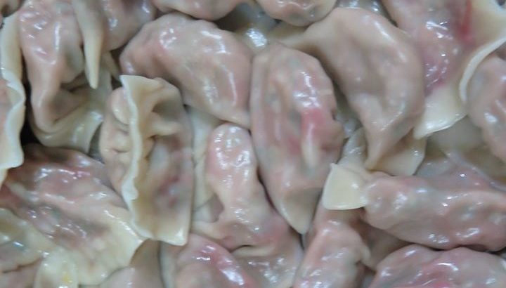 吳月圓老師上週教習的主食是「匏仔火龍果皮(素)水餃」,主要餡料是瓠瓜、香菇、油豆腐、山芹菜,用火龍果皮做色,素臊、薑麻油調味,熟煮的元寶油亮透紅,喜感十足。讓一向對素水餃沒好感的阿北仔吃得撐了還捨不得停筷。(課後心得:蛋奶素的食家不妨在餡料裡加個鹹蛋黃碎末應會有蟹黃餃的味道)