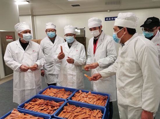 鄒賢啟(左三)督查調研國葯中聯抗新冠肺炎藥品金恭弘=叶 恭弘敗毒顆粒質量管理情況。