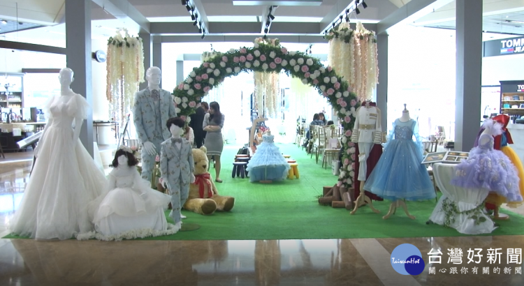 美麗的婚紗出現在購物中心,這是新竹在地最久的婚紗影城所展出的臨時櫃,因為年輕人接手帶來新的思維,在年輕人拍攝婚紗照意願下降,以及網路等自媒體通路興起的現在,業者開闢親子、兒童攝影的新道路,打破以往大家對於婚紗影城只有拍婚紗照的刻板印象。