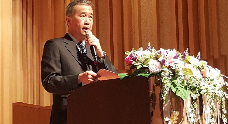 傑出校友蔡宜芳在獲頒科學貢獻獎時致詞鼓勵學生。