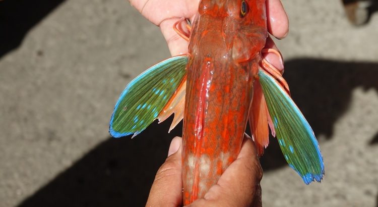 被稱為「水中蝴蝶」的棘黑角魚,鮮紅身體,兩側卻有像翅膀,有著鮮艷藍邊、藍點、閃閃發亮的胸鰭,隨著水流擺動,就像飛舞的鳳蝶一樣,其華麗的胸鰭,連漁民都被迷住說「實在很夢幻」。