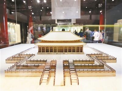 正在景山公園觀德殿進行的“紫禁之巔望中軸”特展,展出了永定門、正陽門、太和殿、萬春亭、鼓樓、鐘樓6個精緻的木質模型 攝影/本報記者 林艷