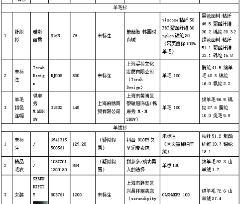 上海市消保委提醒消費者,要選擇正規銷售渠道銷售的正規品牌,選購時注意辨清羊毛、羊絨、化纖製品。