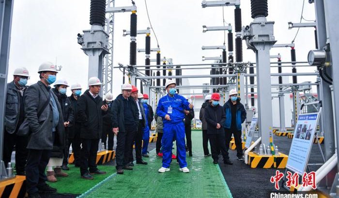 驗收組對變電設備進行觀摩。(劉鵬 攝)