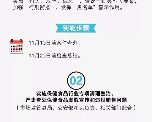 依法打擊保健食品欺詐和虛假宣傳、虛假廣告等違法行為。按照“四個最嚴”要求,進一步強化執法機關和執法者意識,牢固樹立“辦案才是硬道理”的理念,把執法辦案作為衡量工作成效的檢驗標準。黑龍江省市場監管局將制定查處保健食品虛假宣傳法律適用的參考意見,實施嚴厲打擊保健食品企業違規直銷、傳銷行為、嚴厲打擊保健食品虛假宣傳行為、加強保健食品廣告審查和監管執法工作,並通報各市地市場監管局查辦案件情況和典型案例。