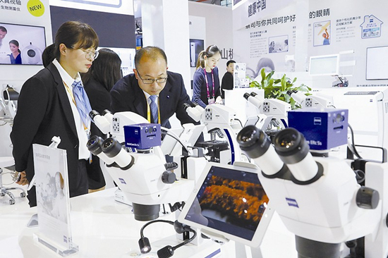 在醫療器械和醫藥保健品展區,全球最新的醫療器械、創新藥物以及診療手段集中亮相。新型的無導線心臟起搏器體積只有傳統心臟起搏器的1/10,可以直接埋入到病人的心臟里;可以隨身佩戴、24小時監控血壓的腕錶式血壓儀,極大滿足了老年群體的需求;羅氏製藥的抗癌新葯在美國獲批后9個月便在中國獲批,也成為了我國不斷深化改革開放,加速創新藥品註冊審評新政的典型案例。