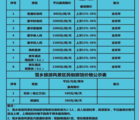不久前,有媒體曝出了雪鄉發布的明碼標價的住宿價格公示表:普通炕位380元/天,標準間880元/天,豪華雙人房1580元/天,商務套房2580元/天……節假日期間還可以上浮15%到30%,而各種雪上娛樂項目也幾乎沒有低於百元的。