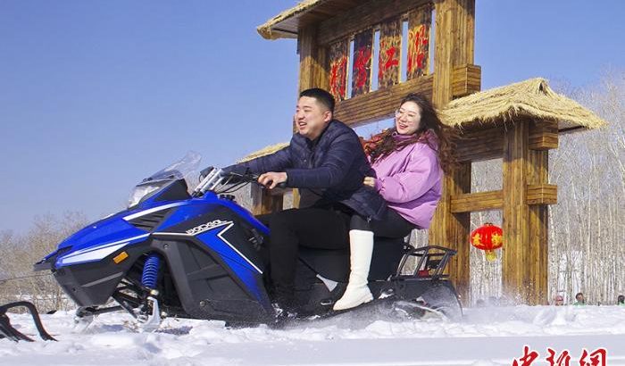 沿江村村民載着遊客體驗雪地摩托。(資料圖) 撫松縣委宣傳部供圖 攝