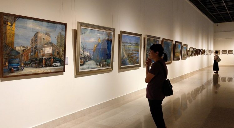 新北市藝文中心展出數十件各地人文風景畫達觀畫會。(圖/文化局提供)
