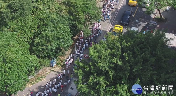 1500位雨農國小、蘭雅國中的師生和家長,大夥手牽手環抱芝山岩,透過空拍機鏡頭,場面相當壯觀。儀式結束,所有人集結到惠濟宮前廣場,欣賞精彩的醒獅團表演。