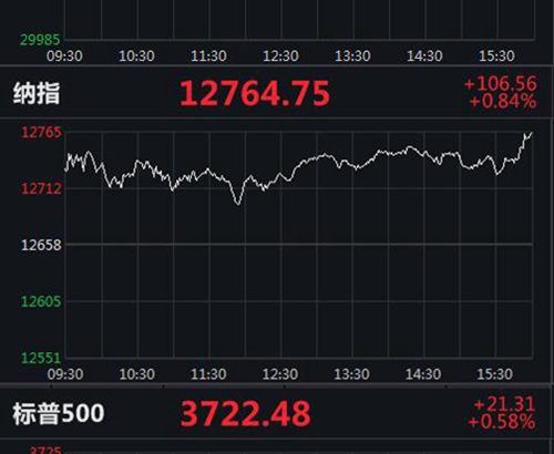 截至收盤,道指收漲148.83點,漲幅0.49%,報30303.37點;納指收漲106.56點,漲幅0.84%,報12764.75點;標普500指數收漲21.31點,漲幅0.58%,報3722.48點。