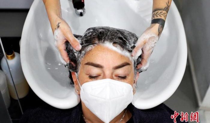 資料圖:意大利羅馬一家美髮店內的顧客戴着口罩。