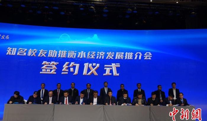 當日,來自北京、天津、上海等全國各地重點企業、科研高校共計150餘知名衡水中學校友齊聚衡水市,共享商機,助推衡水經濟發展。