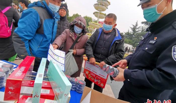 鄭州警方向群眾講解假冒偽劣產品對身體的傷害。 寧曉波 攝
